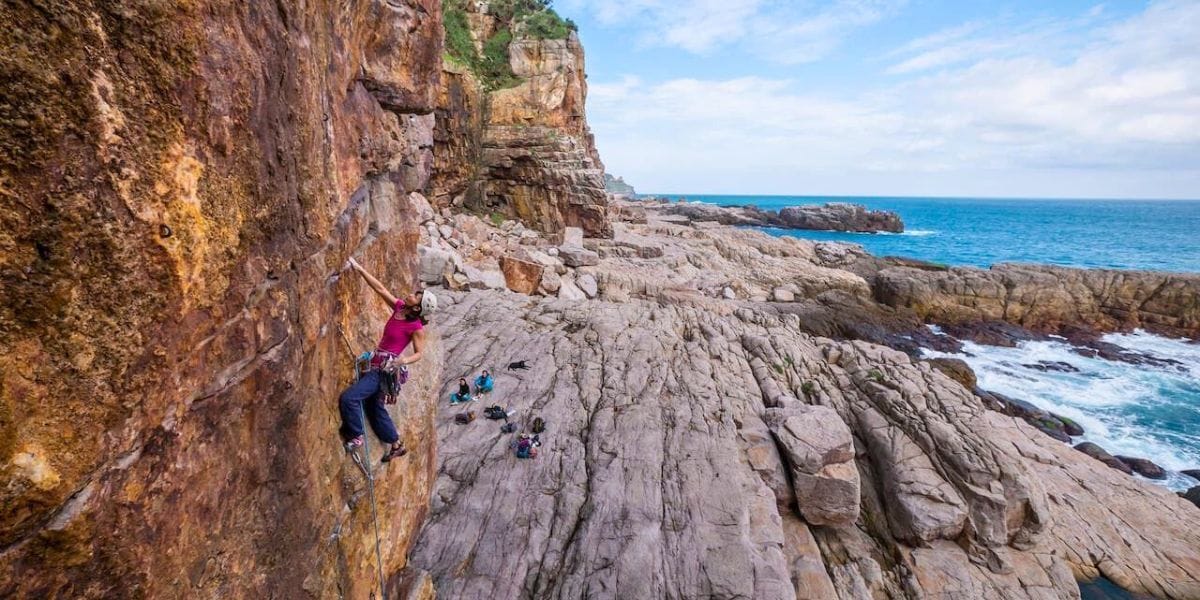 About an hour from Taipei on the northeast coast, Dragon Cave Bay hides some of the best seaside climbing in East Asia. From the fishing harbor, trails lead to towering sea cliffs that challenge experienced climbers and reward them with ocean panoramas. It’s a wild, windswept spot that feels worlds away from the city, yet is easy enough for a day trip.